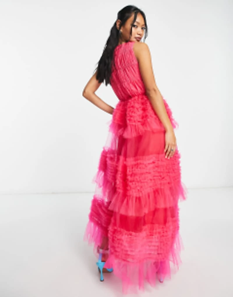 Amy Lynn Honor Tiered Tulle Maxi Dress In Hot Pink