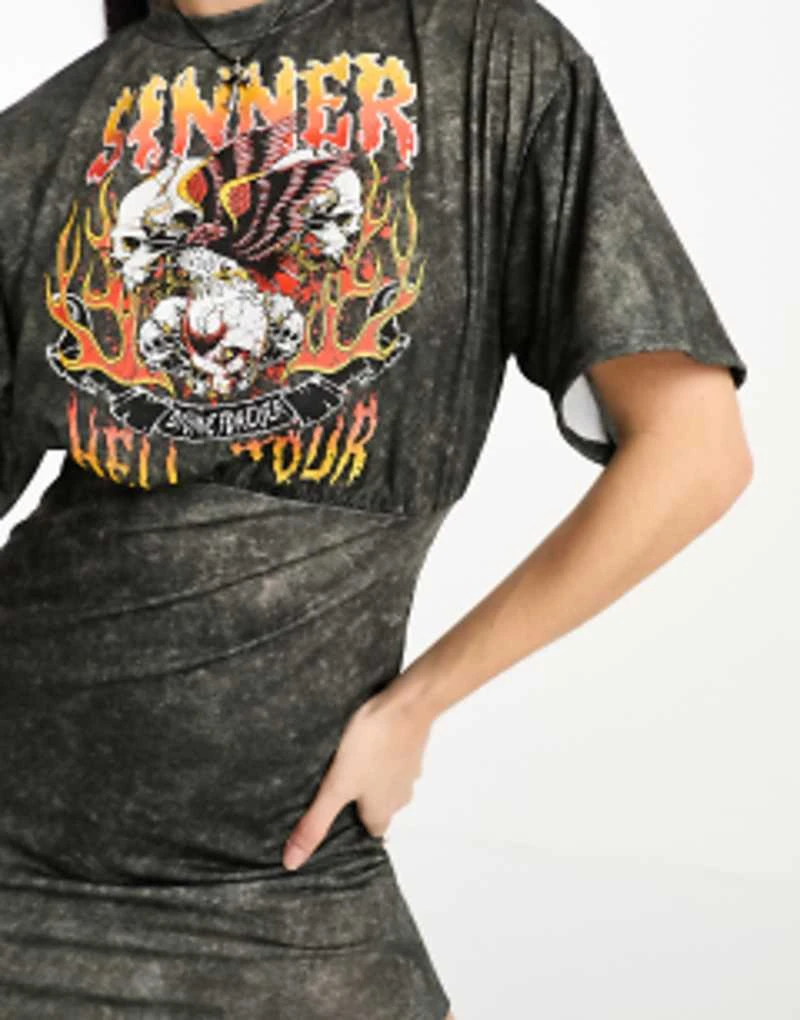 ASOS DESIGN Bodycon T-shirt Dress With Oversized Top With Sinner Graphic In Grey