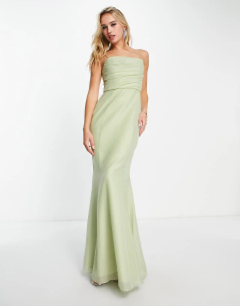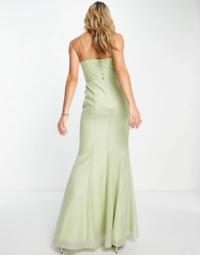 ASOS DESIGN Bridesmaid Drape Detail Maxi Dress With Corset In Sage