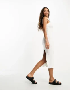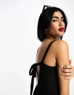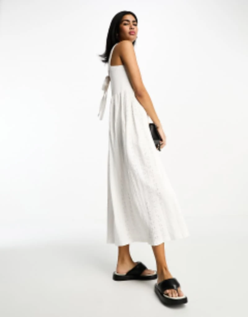 ASOS DESIGN Broderie And Knit Mix Strappy Midi Dress In Black