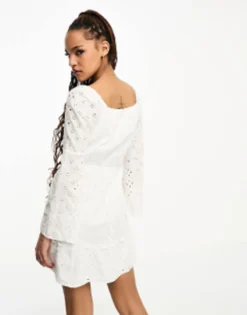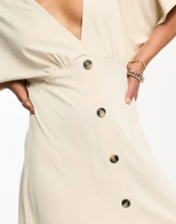 ASOS DESIGN Flutter Sleeve Mini Tea Dress With Buttons In Stone