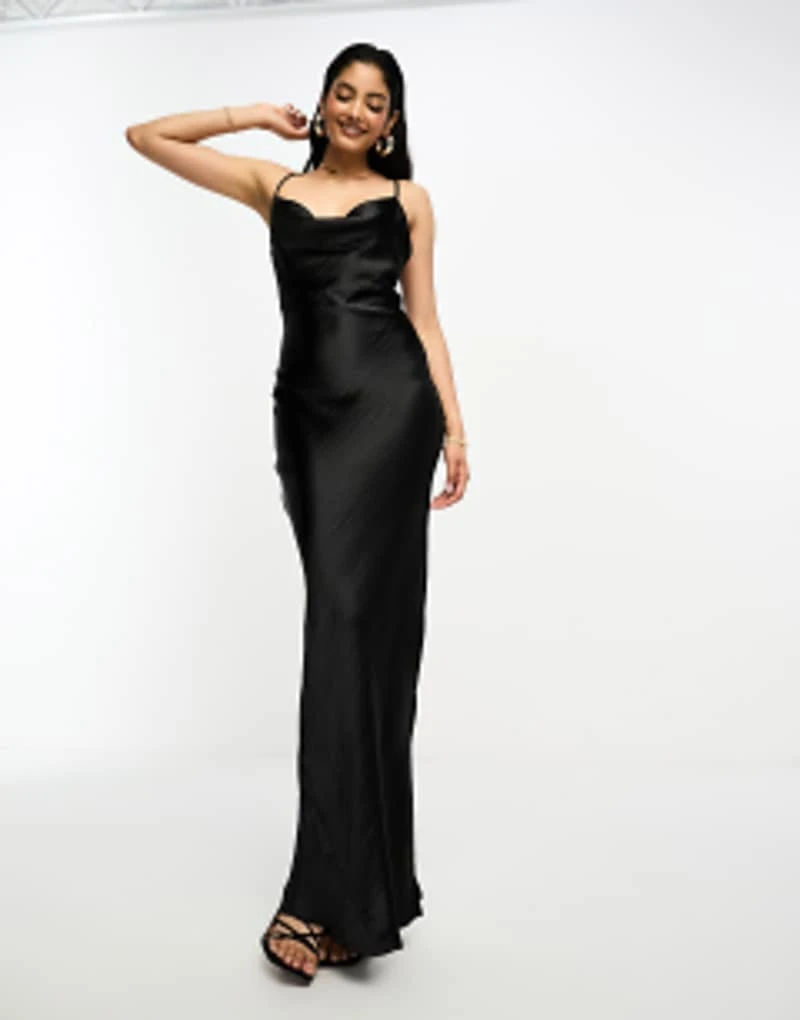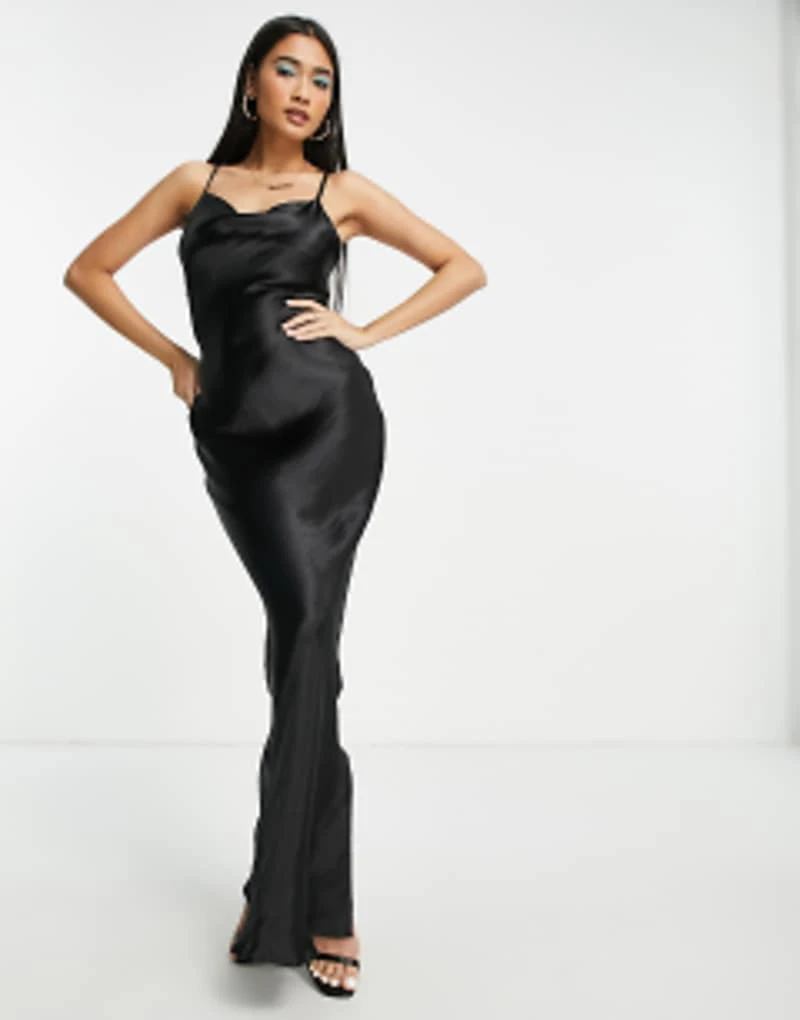 ASOS DESIGN Cami Maxi Slip Dress In High Shine Satin With Lace Up Back In Gunmetal