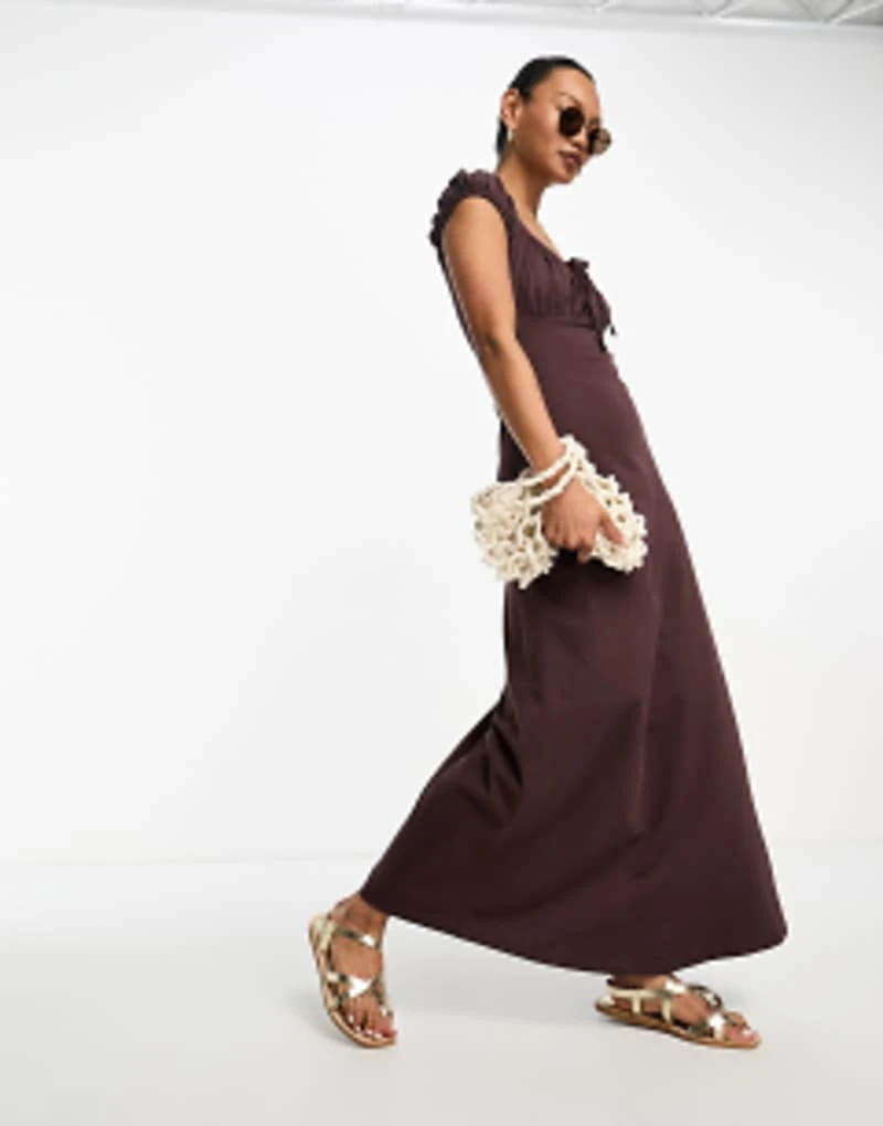ASOS DESIGN Halter Midaxi Dress With Shirred Bodice In Orange