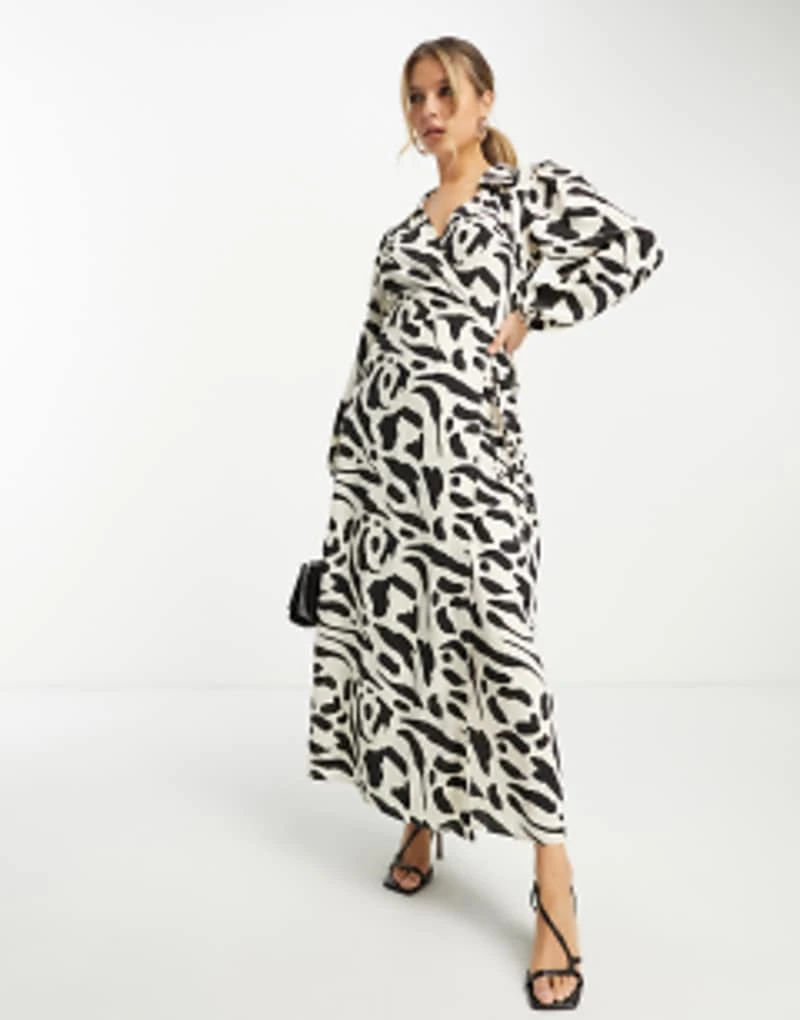 ASOS DESIGN Asymmetric Wrap Round Midi Dress In Smudge Print