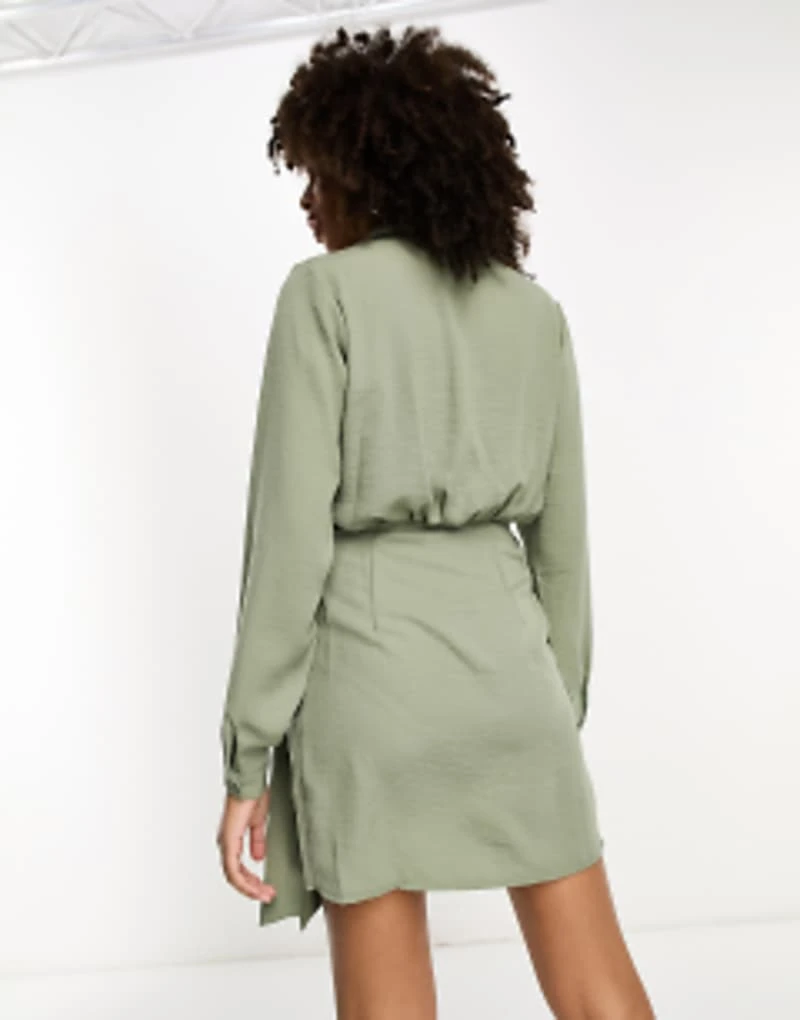 ASOS DESIGN Long Sleeve Mini Smock Dress With Buttons In Black