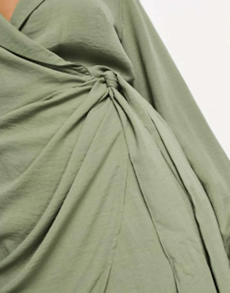 ASOS DESIGN Puff Sleeve Pleated Dobby Midi Dress With Scallop Trim In Forest Green