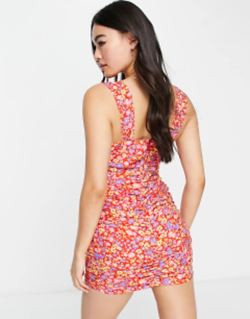 ASOS DESIGN Viscose Sweetheart Neckline Long Sleeve Midi Dress In Mixed Print