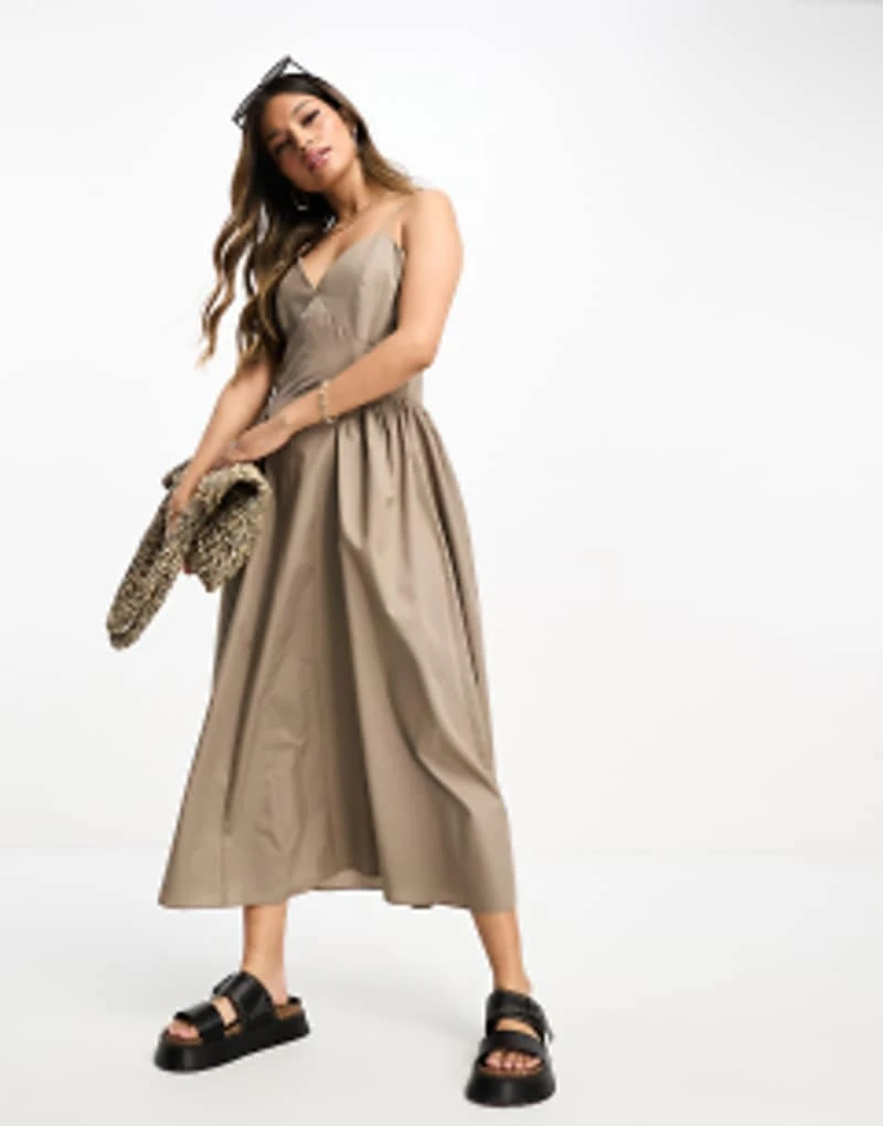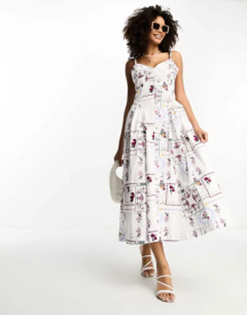 ASOS DESIGN Viscose Sweetheart Neckline Long Sleeve Midi Dress In Mixed Print
