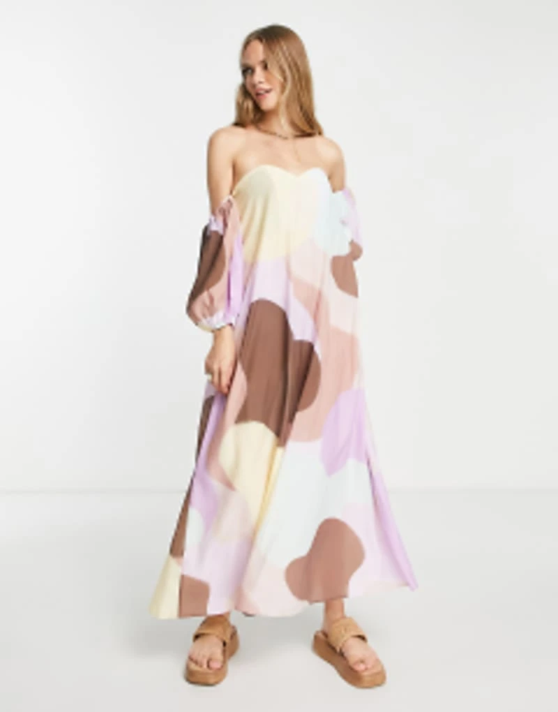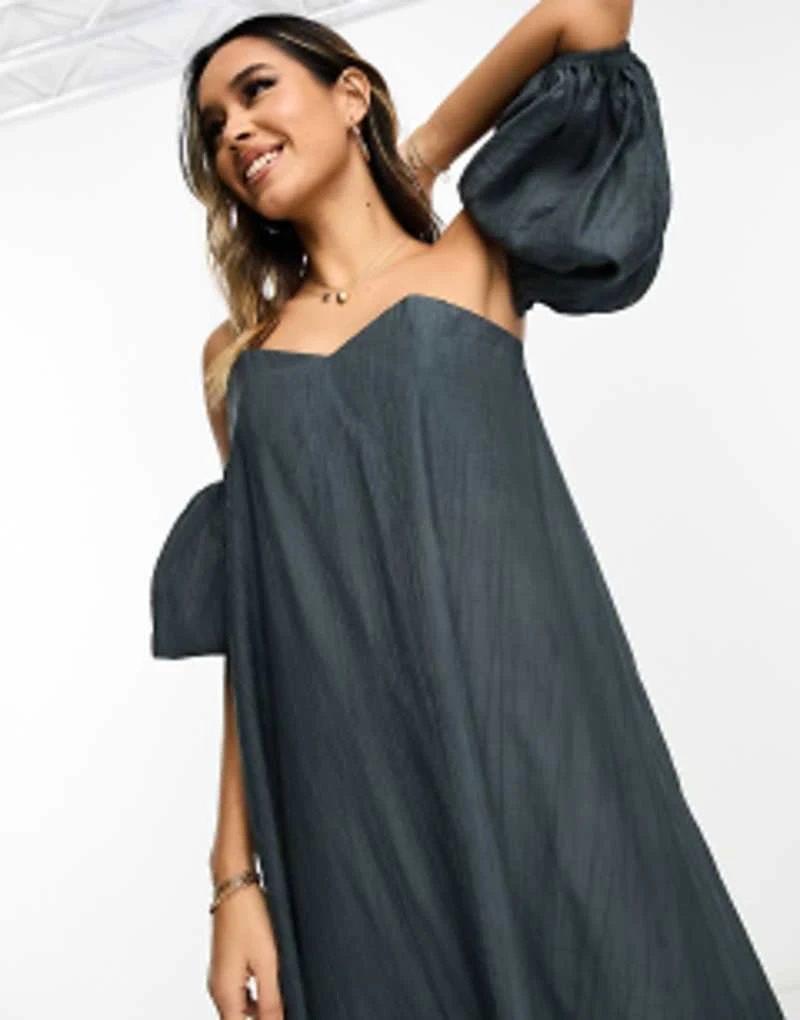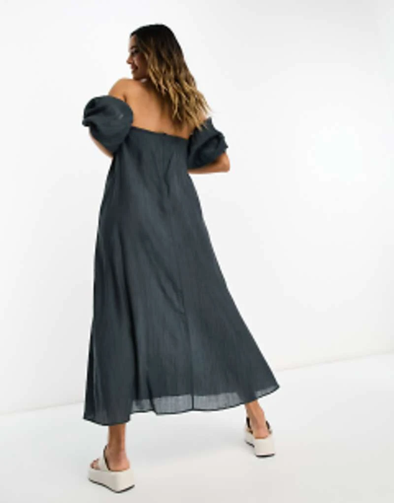 ASOS DESIGN Crinkle Trapeze Maxi Dress With Sleeve In Slate Grey