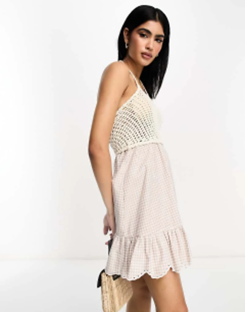 ASOS DESIGN Square Neck Mini Seersucker Dress In Mixed Gingham Print