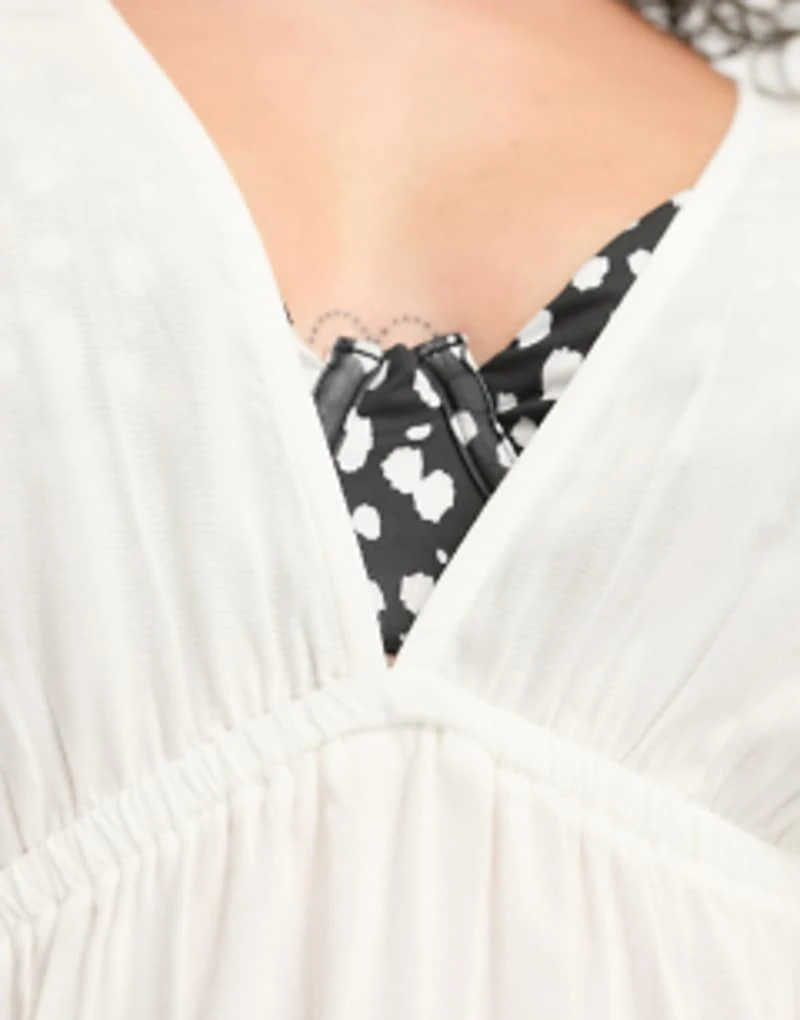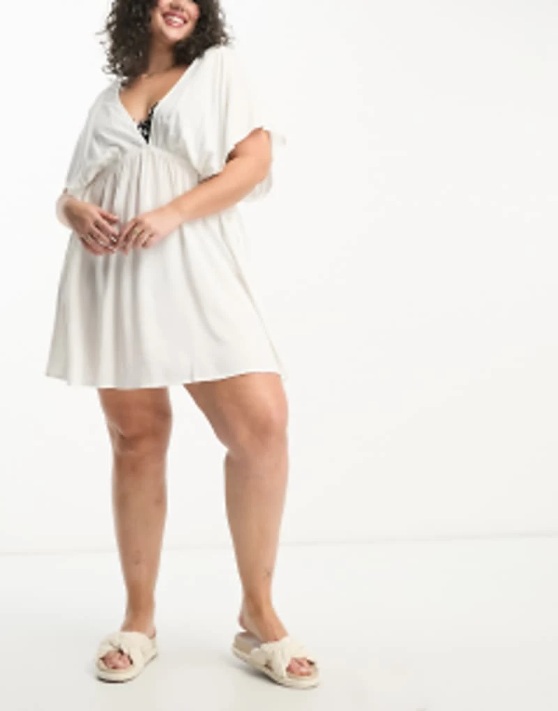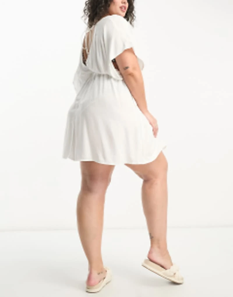 ASOS DESIGN Curve Flutter Sleeve Mini Beach Dress With Channelled Tie Waist In White