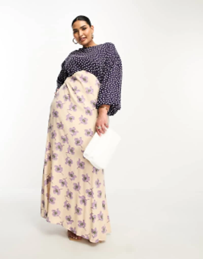 ASOS DESIGN Curve Long Sleeve Viscose Maxi Dress In Mixed Spot And Floral Print