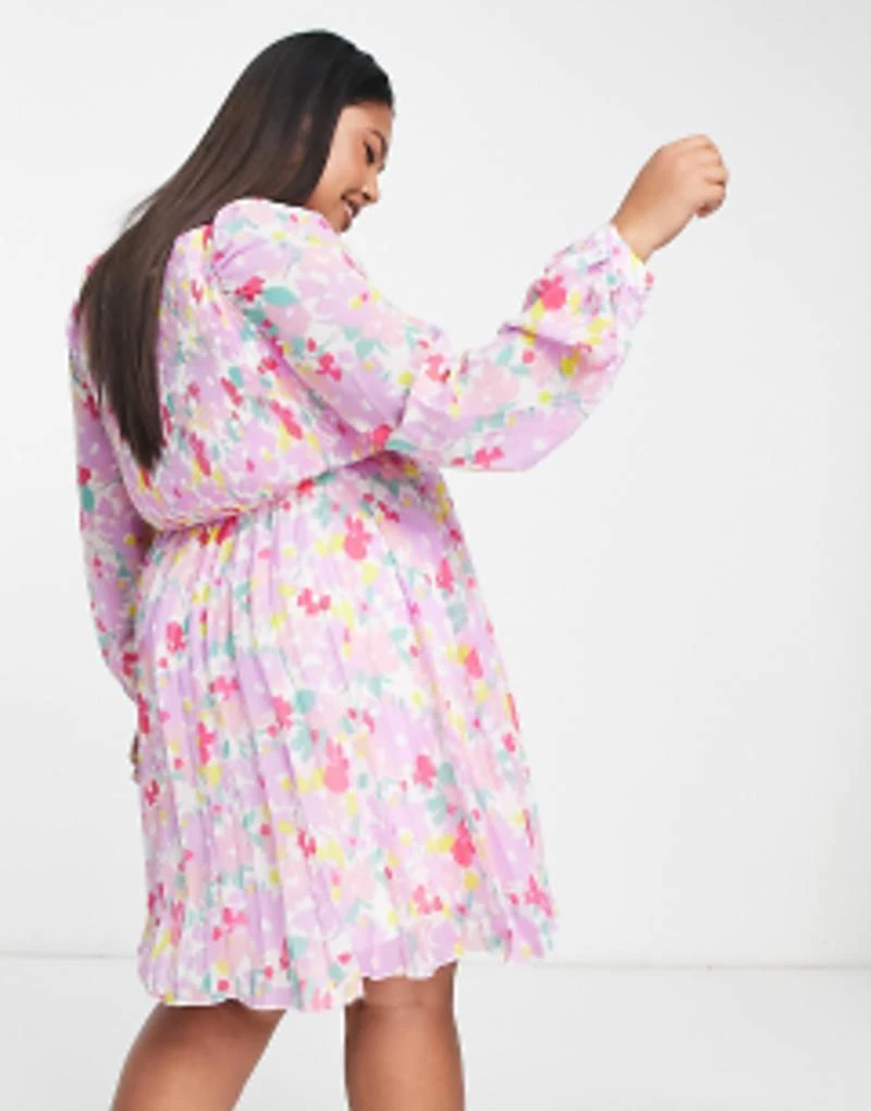 ASOS DESIGN Curve Square Neck Pleated Mini Skater Dress In Lilac Floral