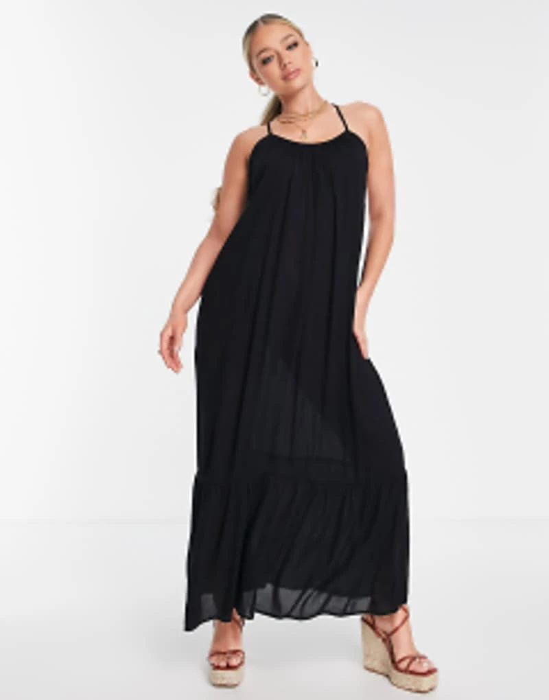 ASOS DESIGN Drop Hem Crinkle Beach Maxi Dress In Black