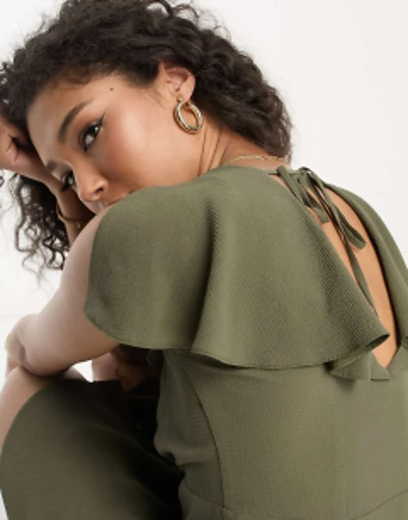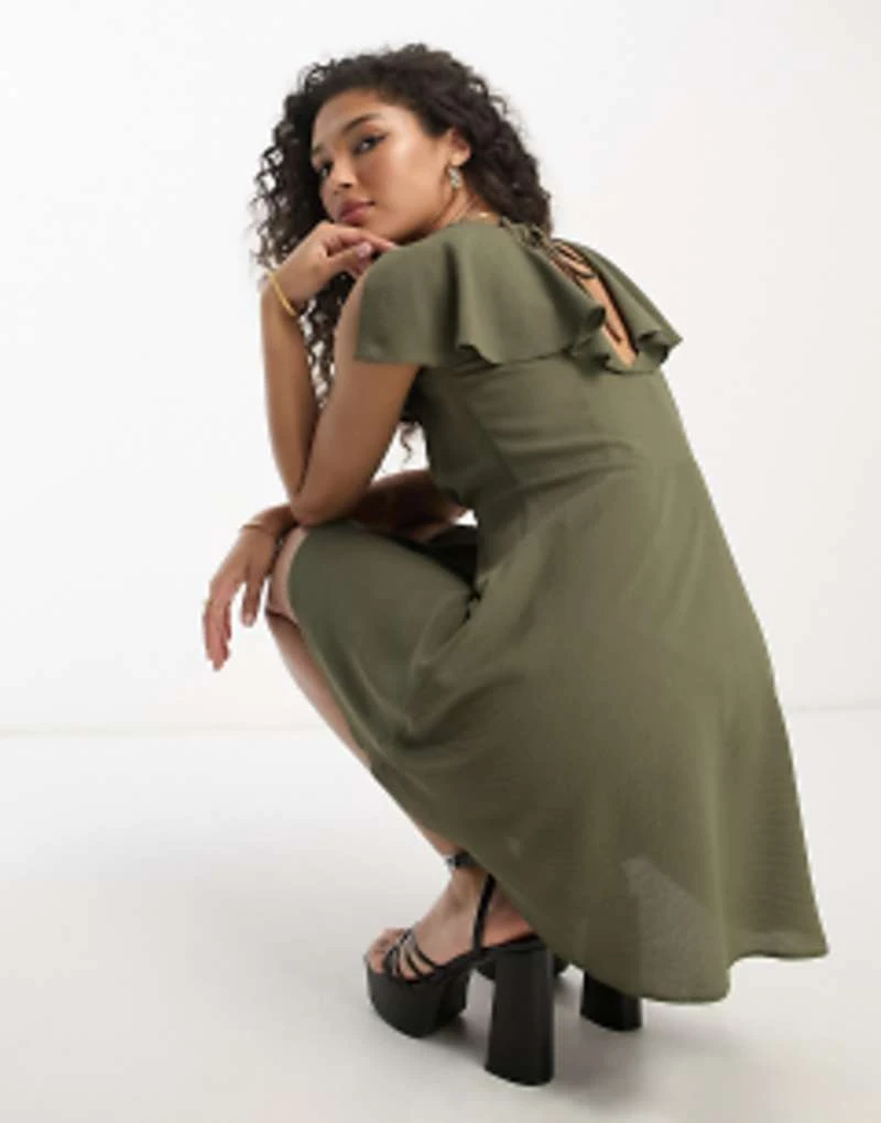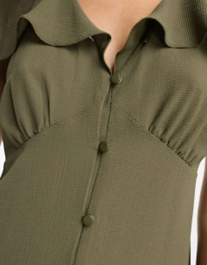 ASOS DESIGN Flutter Sleeve Mini Tea Dress With Buttons In Stone