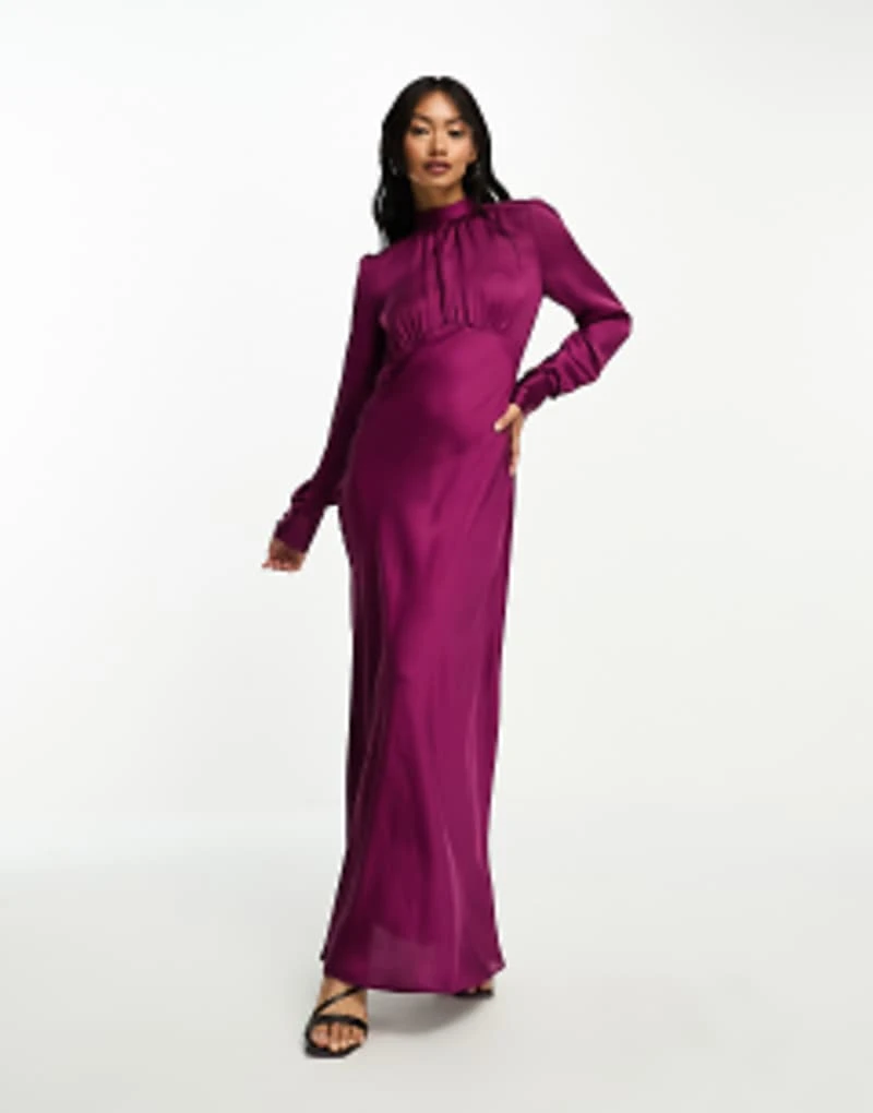 ASOS DESIGN High Neck Maxi Satin Tea Dress In Abstract Blurred Print
