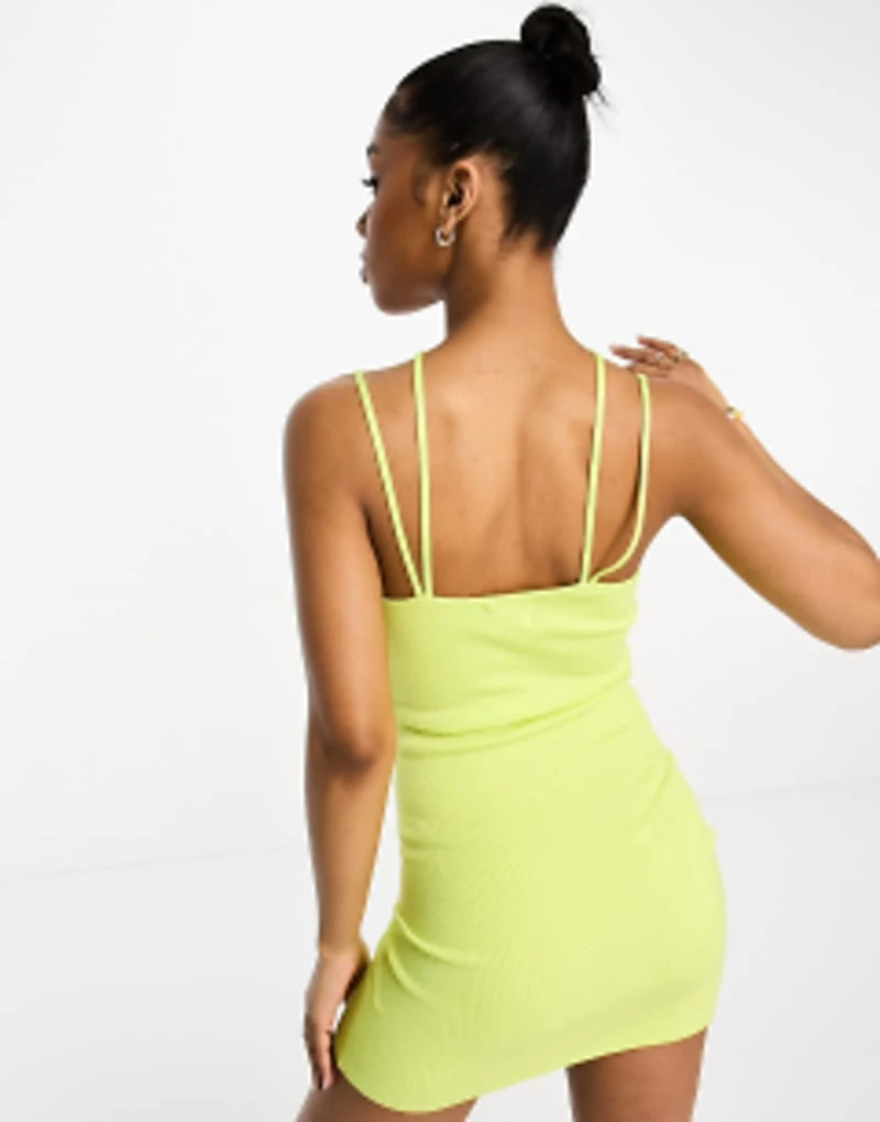 ASOS DESIGN Knitted Mini Dress With Cross Over Strap In Lime