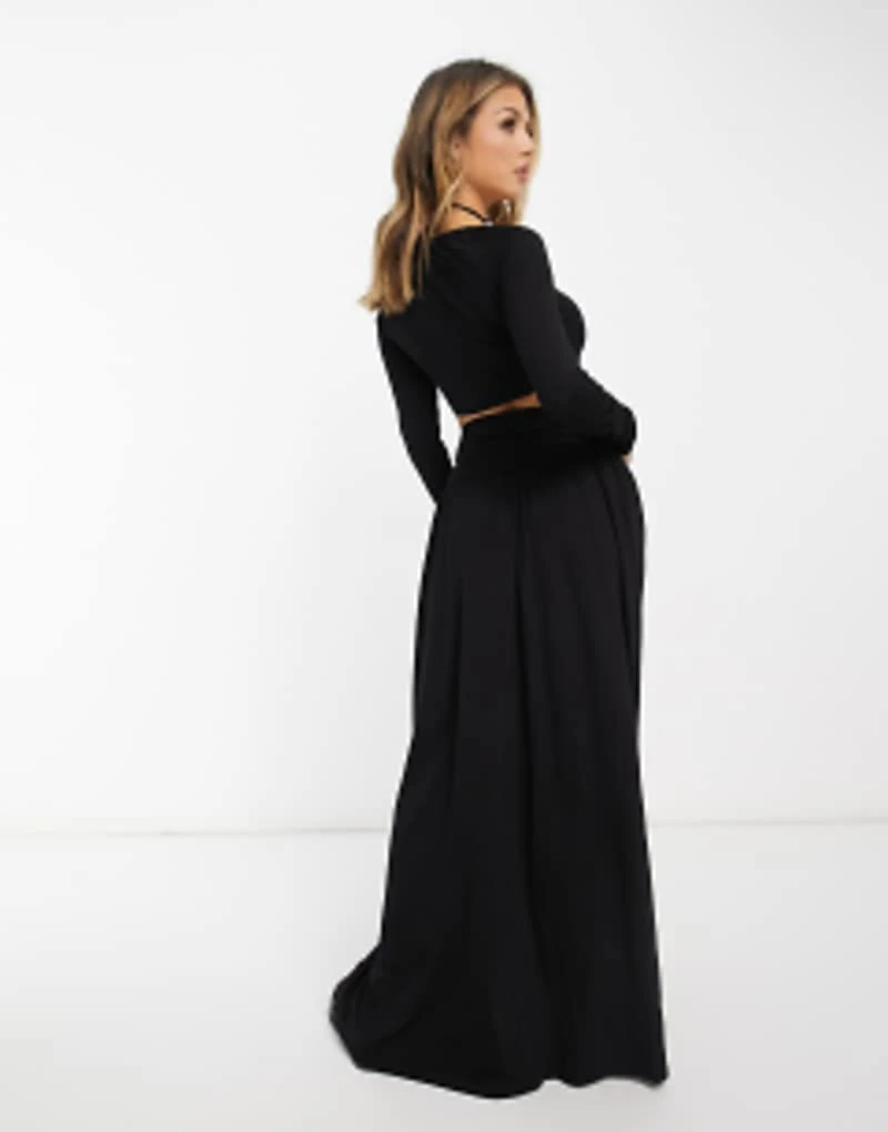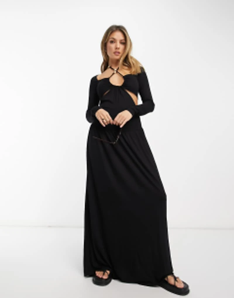 ASOS DESIGN Maxi Dress With Cut Out Detail And Tie Neck With Beaded Trim