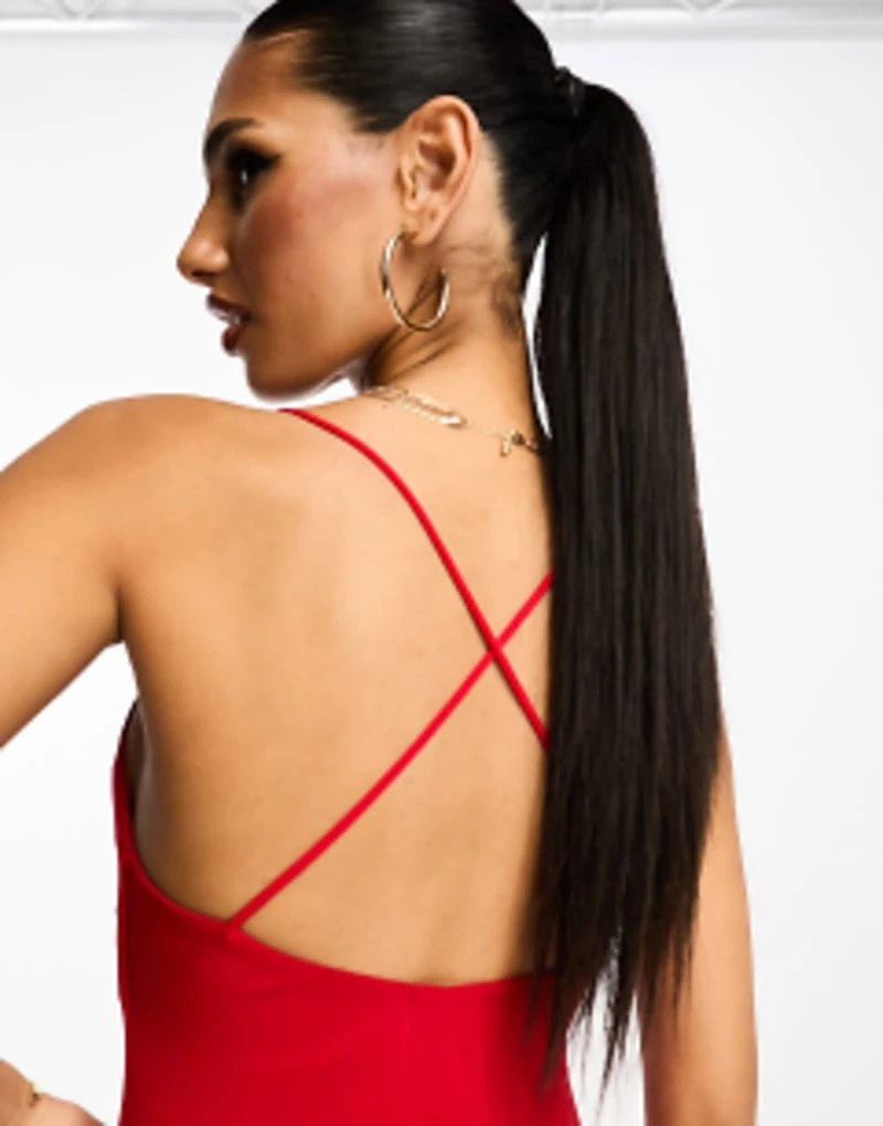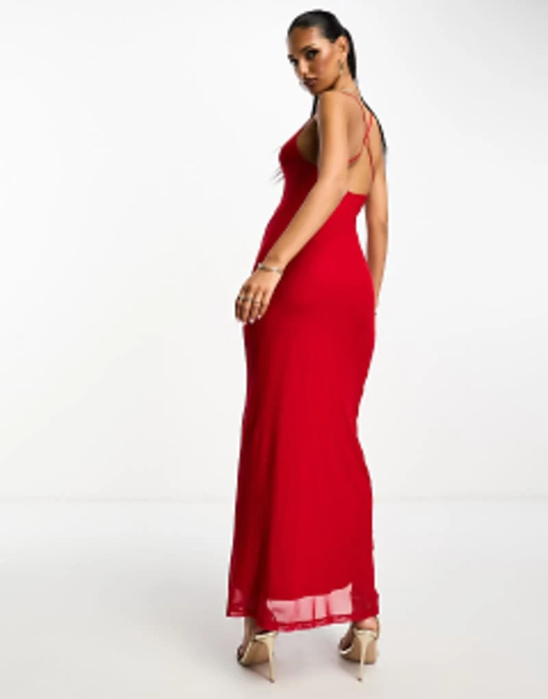 ASOS DESIGN Mesh Cami Maxi Dress With Cross Back In Red