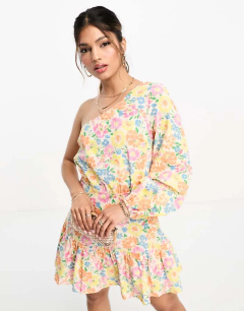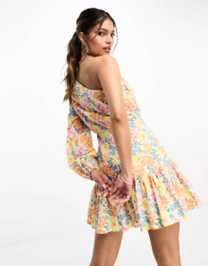 ASOS DESIGN Multi Flutter Sleeve Ruffle Midaxi Dress With Button Detail In Lemon Floral Print