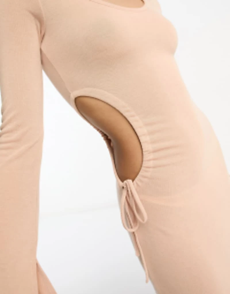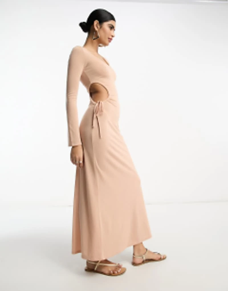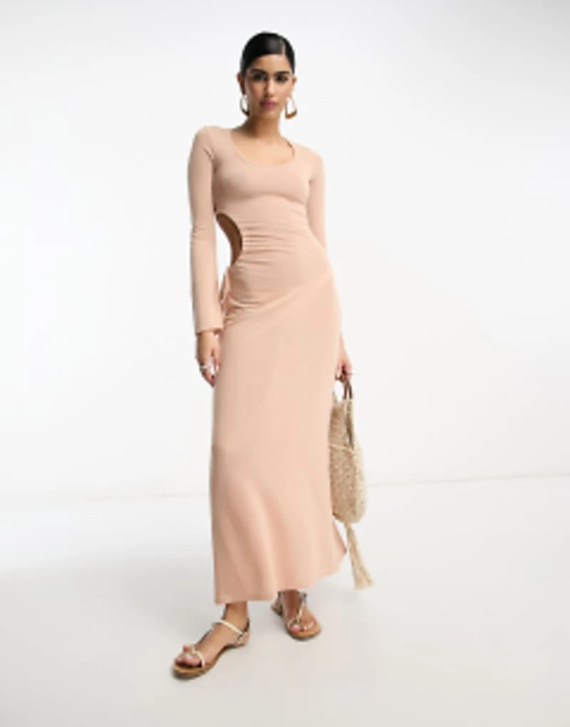 ASOS DESIGN Scoop Ruched Side Maxi Dress With Long Sleeve In Light Pink