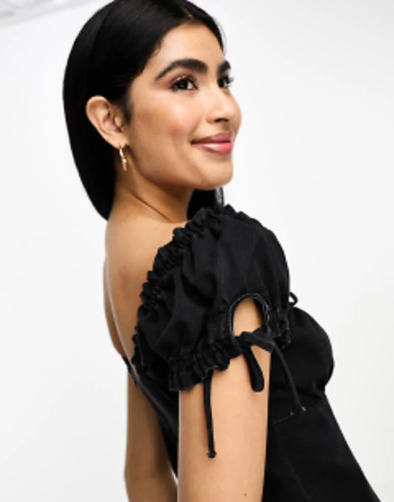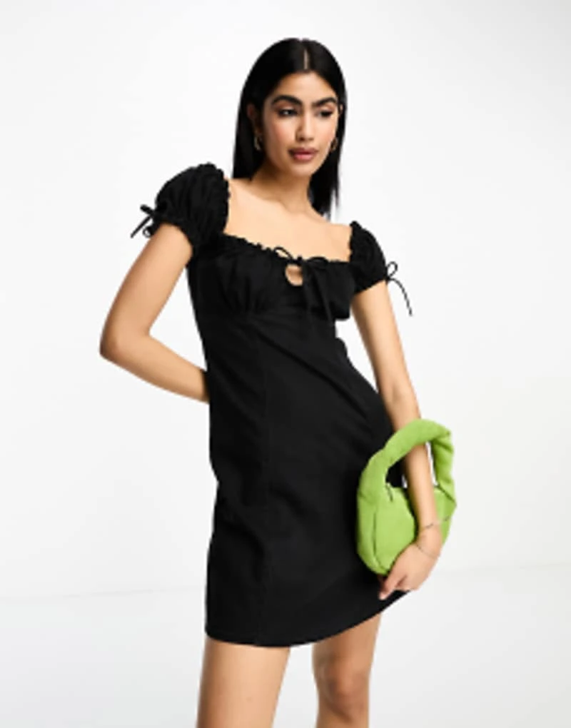 ASOS DESIGN Flutter Sleeve Mini Tea Dress With Buttons In Stone