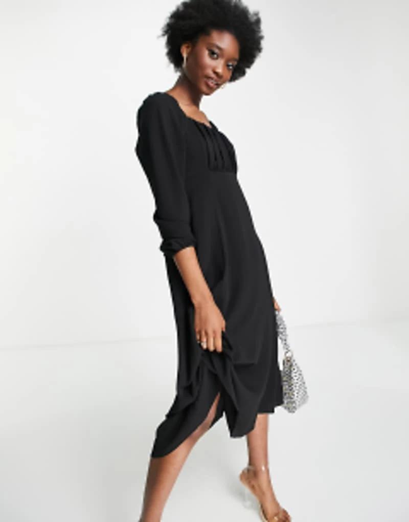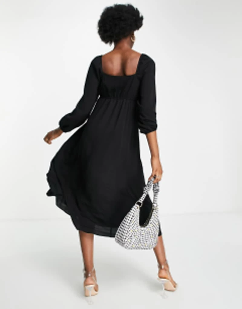 ASOS DESIGN Long Sleeve Mini Smock Dress With Buttons In Black