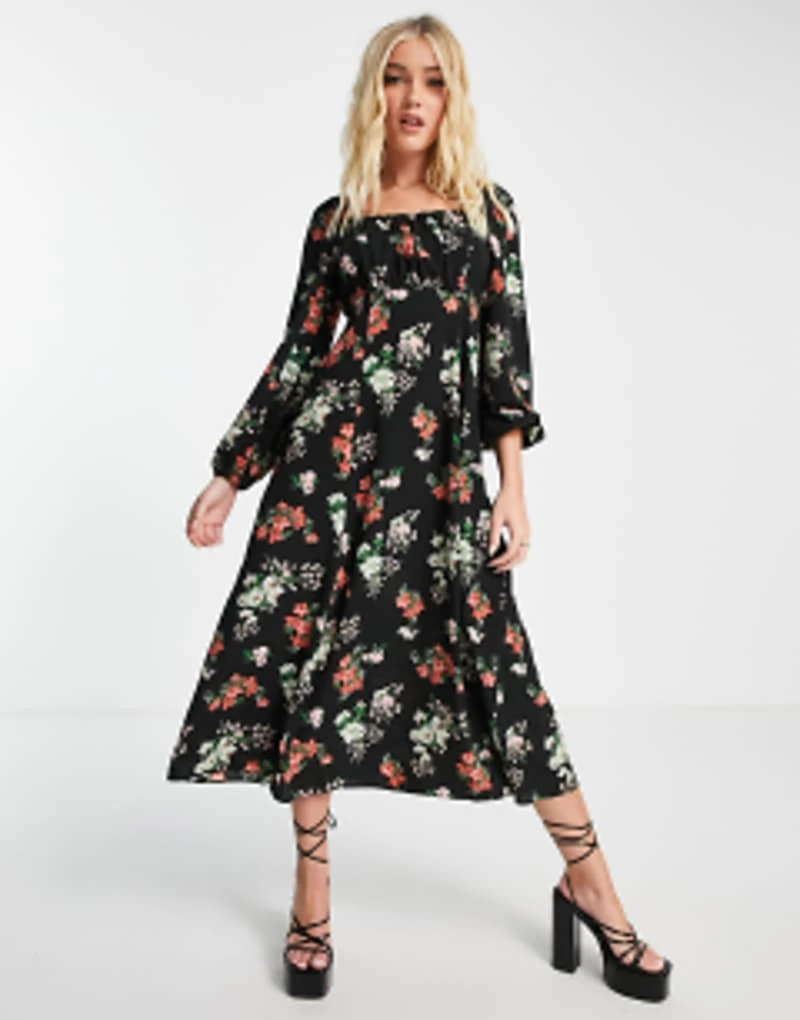 Miss Selfridge Long Sleeve Button Through Maxi Dress In Spot Print