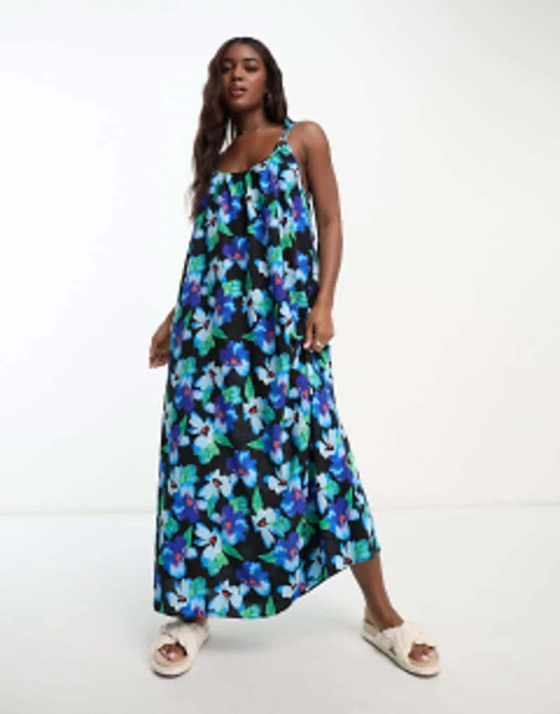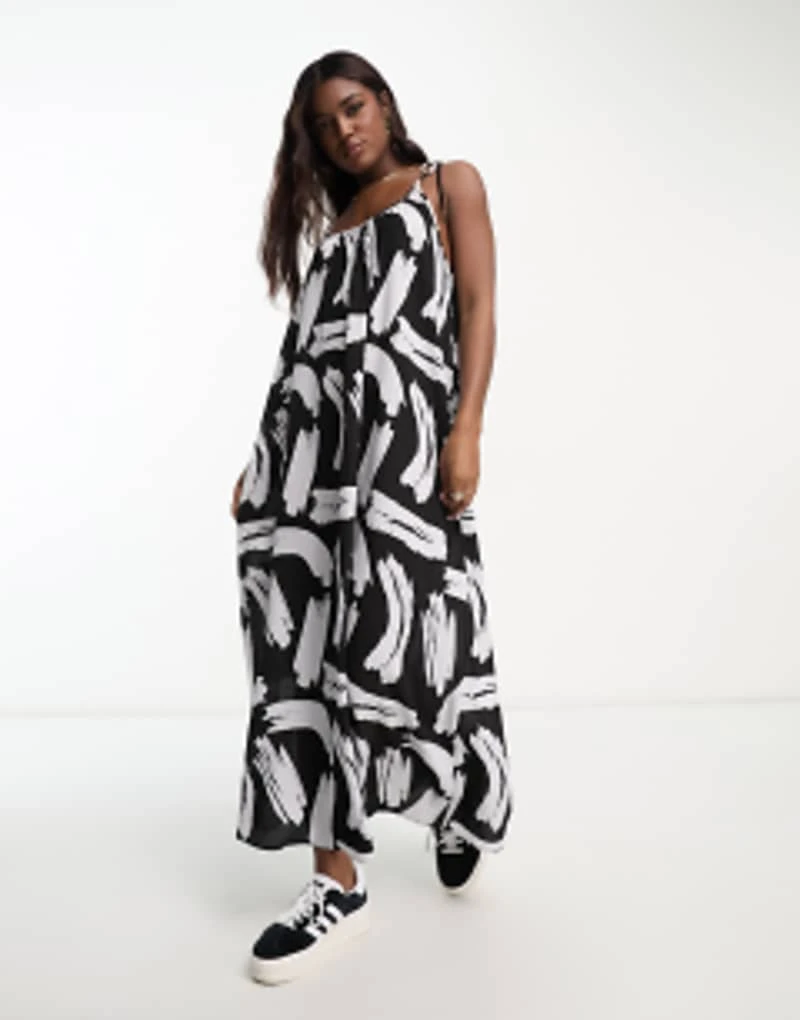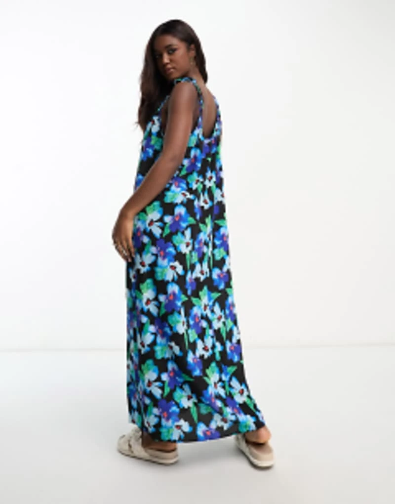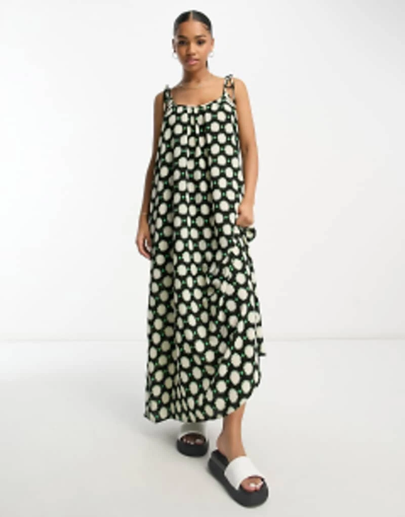 ASOS DESIGN Viscose Sweetheart Neckline Long Sleeve Midi Dress In Mixed Print