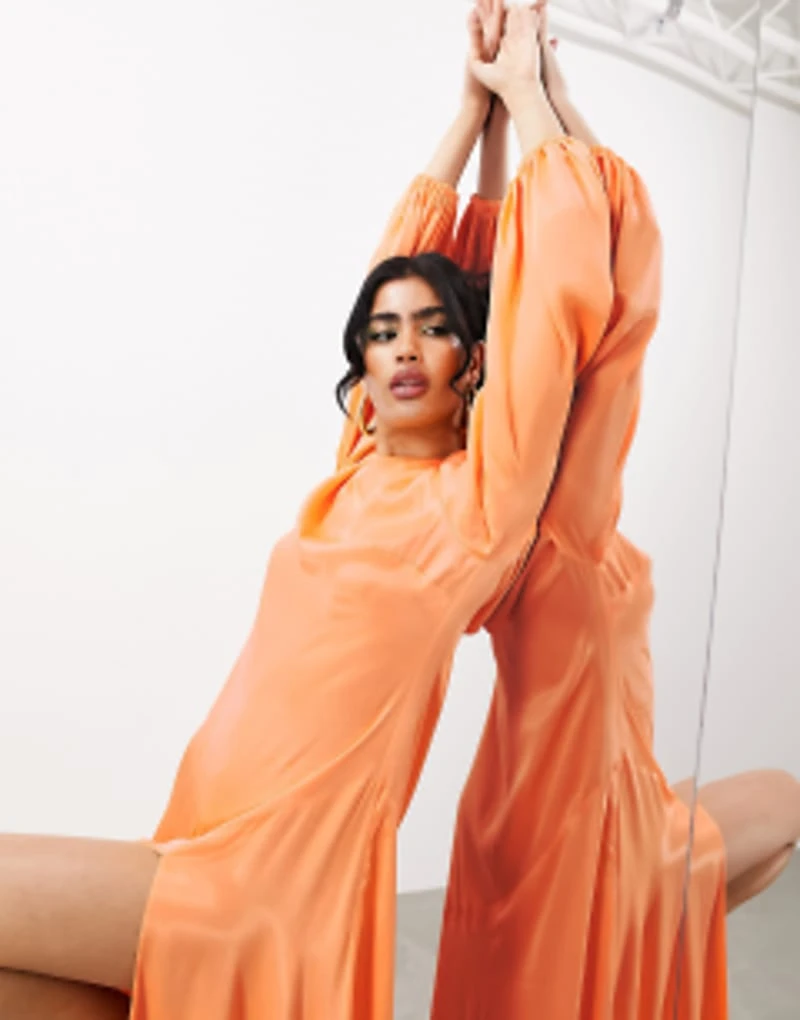 ASOS DESIGN Viscose Sweetheart Neckline Long Sleeve Midi Dress In Mixed Print