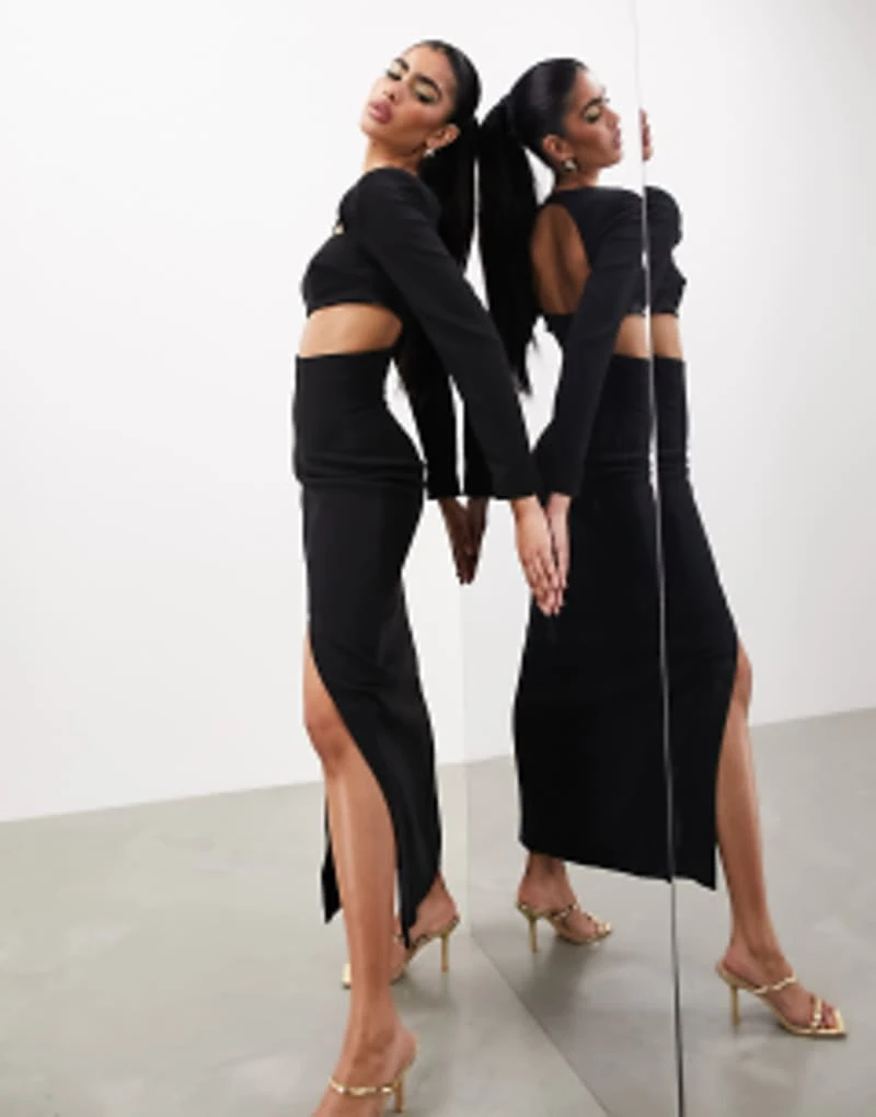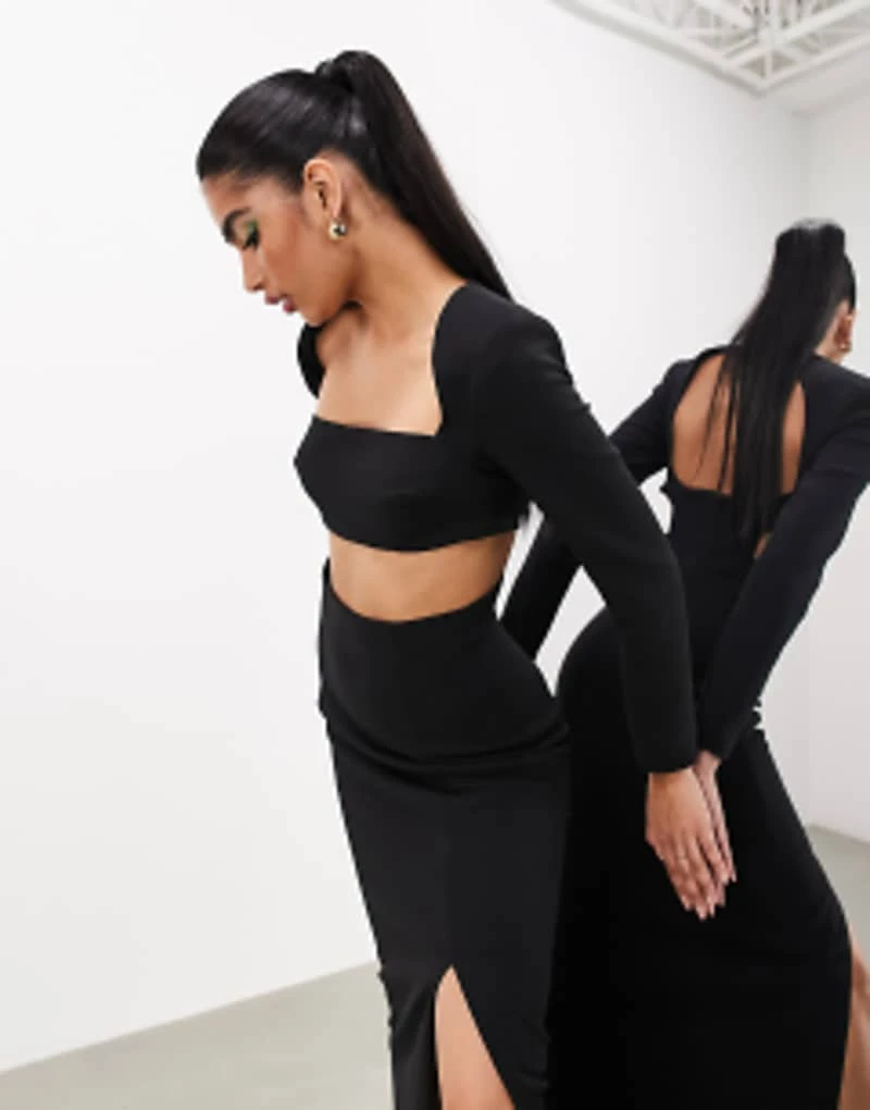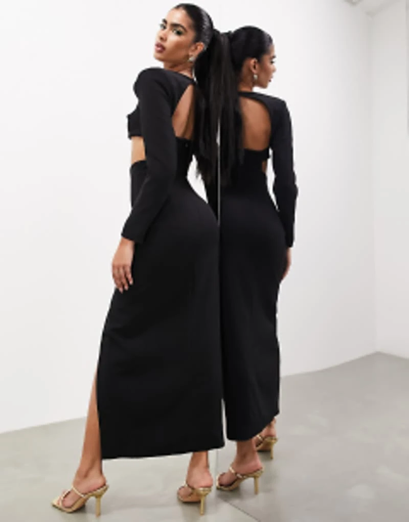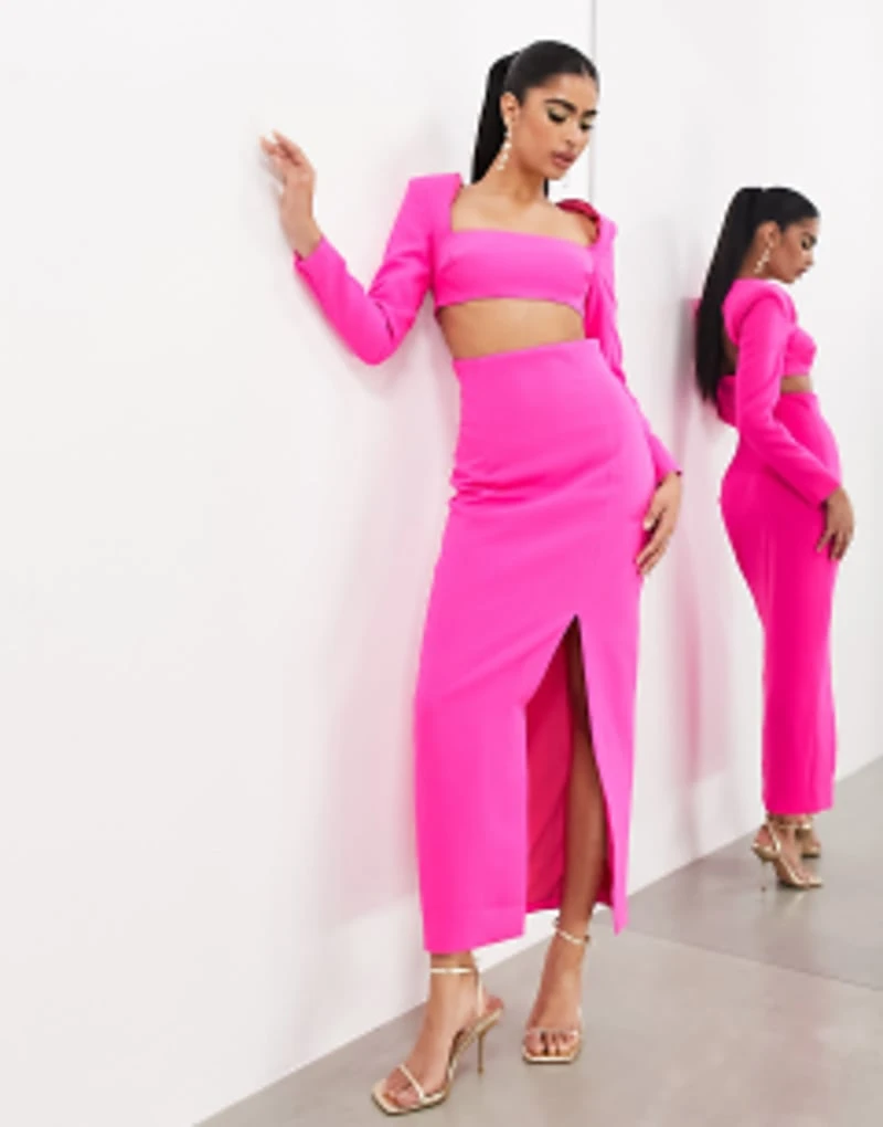 ASOS DESIGN Halter Midaxi Dress With Shirred Bodice In Orange