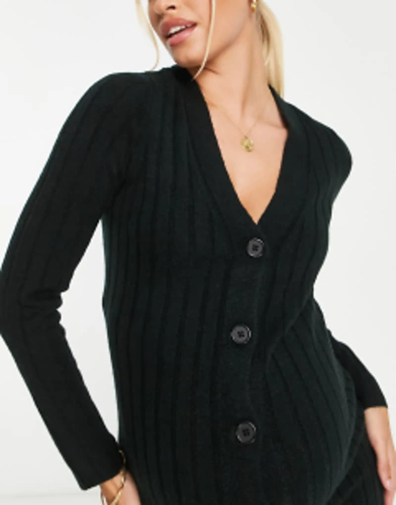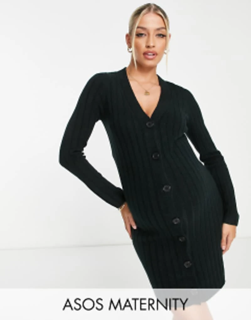 ASOS Maternity ASOS DESIGN Maternity Knitted Mini Dress With Button Through Detail In Black