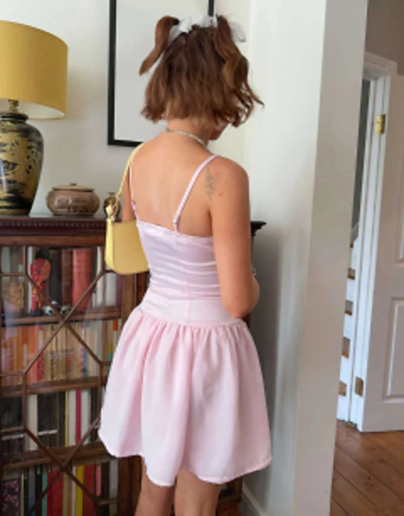 Daisy Street X Chloe Davie Y2K Drop Waist Satin Corset Dress With Frill Hem