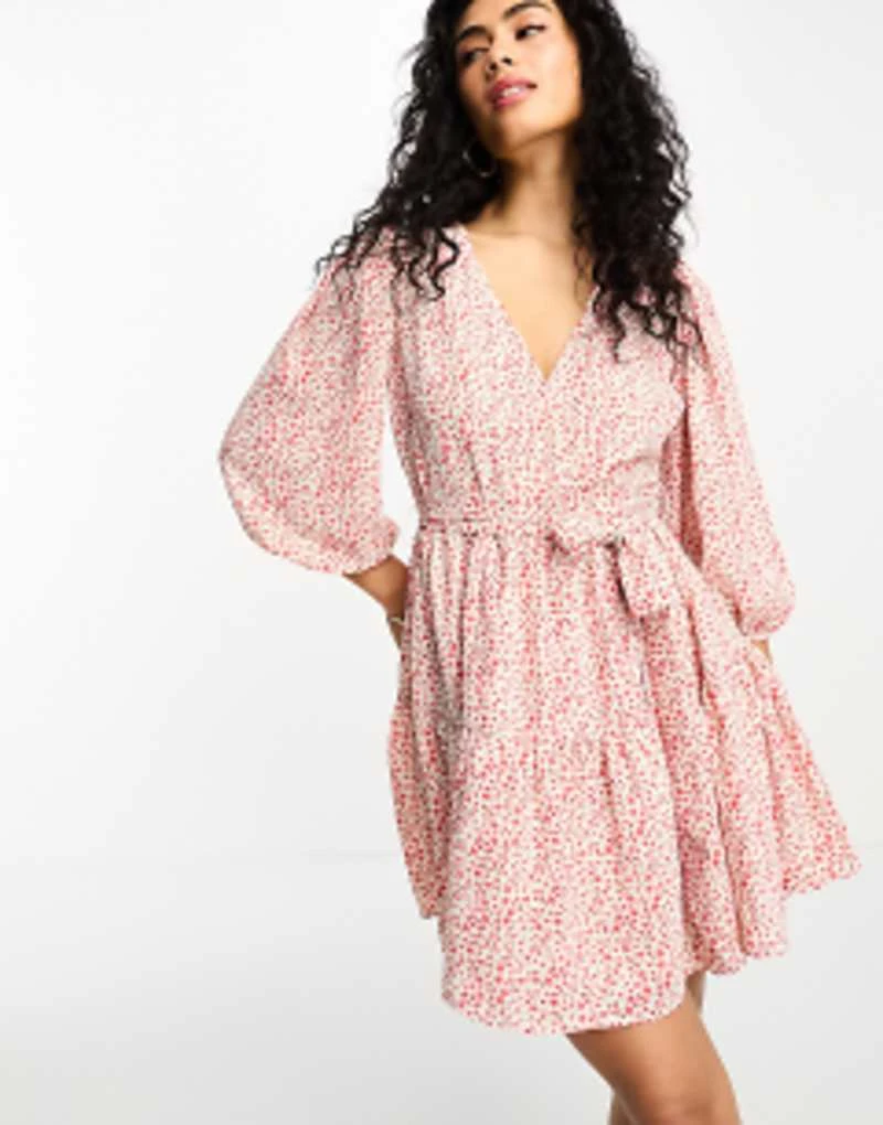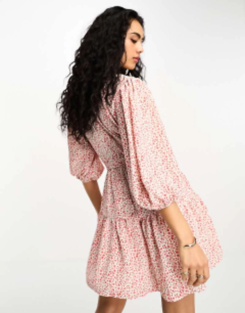 Miss Selfridge Bardot Ruffle Mini Dress In Largescale Floral