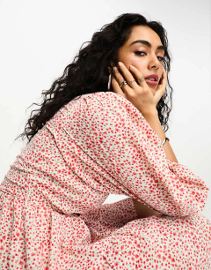 Miss Selfridge Long Sleeve Button Through Maxi Dress In Spot Print