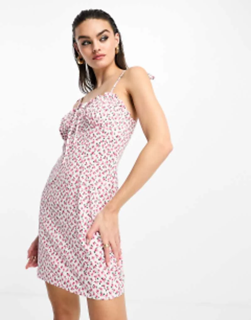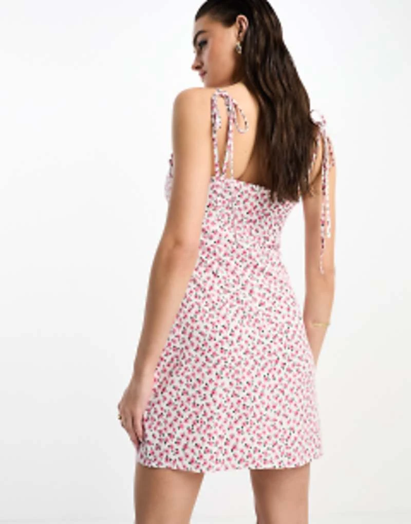 Miss Selfridge Strappy Button Through Rara Mini Dress In Pink Ditsy