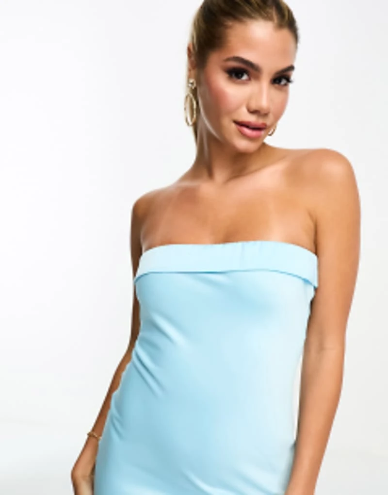 In The Style Exclusive Satin Bandeau Midi Slip Dress In Turquoise