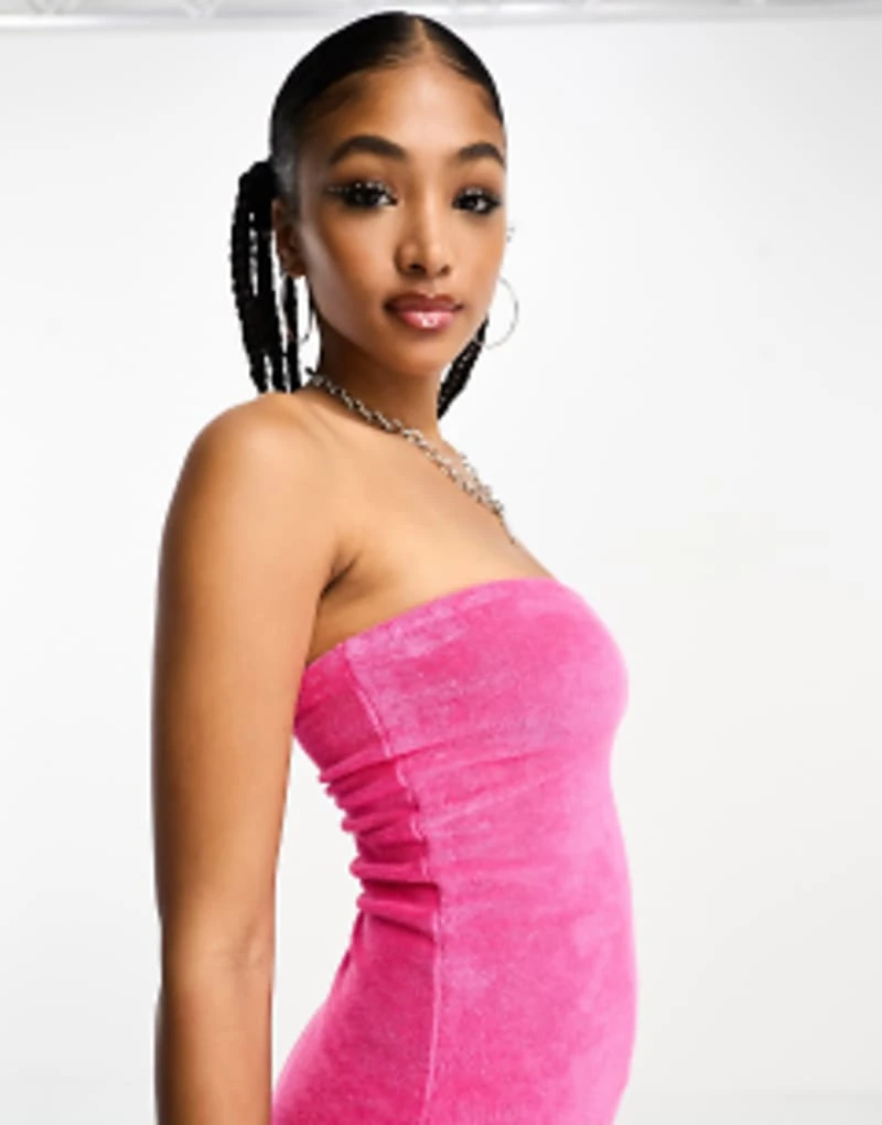 JJXX Terry Towelling Bandeau Mini Bodycon Dress In Bright Pink