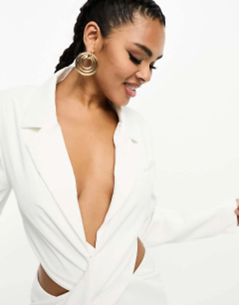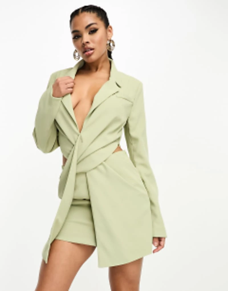 Kaiia Twist Front Cut Out Mini Blazer Dress In Ivory