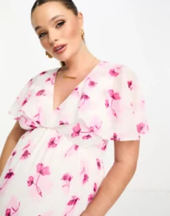 ASOS Maternity ASOS DESIGN Maternity Angel Cape Sleeve Pleated Hem Midi Dress In Floral Print