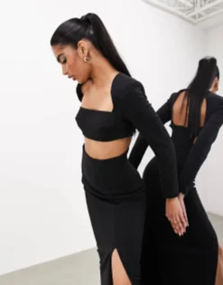 ASOS EDITION Statement Long Sleeve Square Neck Maxi Dress In Black