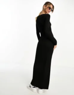 Miss Selfridge Super Soft Square Neck Long Sleeve Maxi Dress In Black