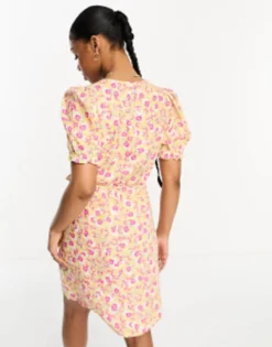 Miss Selfridge Strappy Button Through Rara Mini Dress In Pink Ditsy