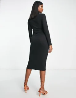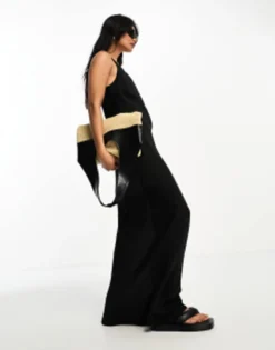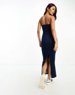 PULL & BEAR Pull&Bear Seamless Stretch Denim Bandeau Maxi Dress In Indigo Blue