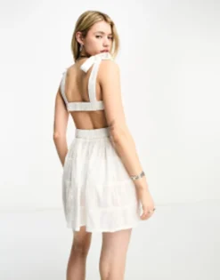 Reclaimed Vintage Prairie Mini Dress With Tie Straps In White