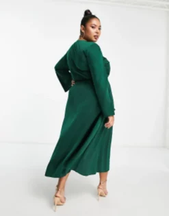 ASOS DESIGN Curve Bias Cut Satin Wrap Dress With Tie Waist In Forest Green