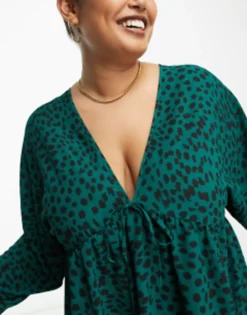 ASOS DESIGN Curve Chuck On Swing Mini Dress In Green Animal Print