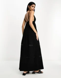 ASOS DESIGN Crochet Detail Strappy Tiered Maxi Dress In Black