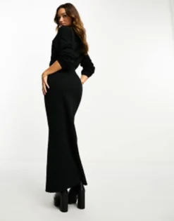 ASOS DESIGN Crew Neck Blouson Sleeve Ribbed Maxi Dress In Black