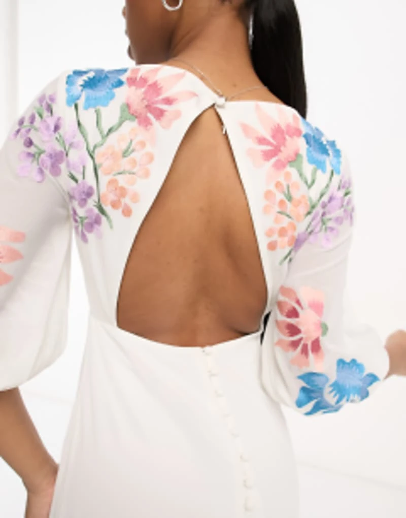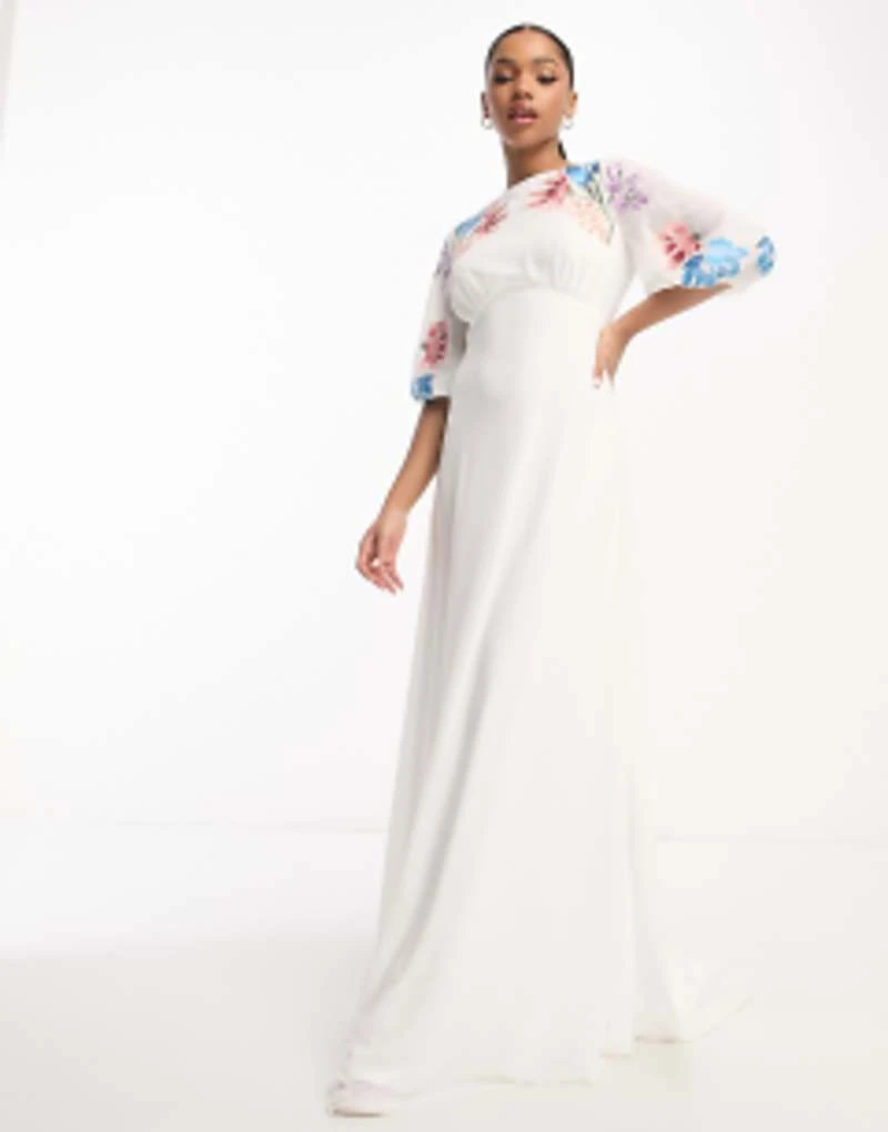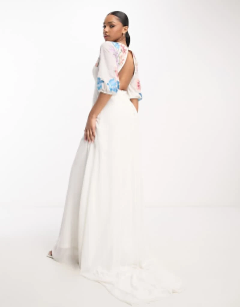 Maya Bridal Embroidered Puff Sleeve Maxi Dress In Ivory